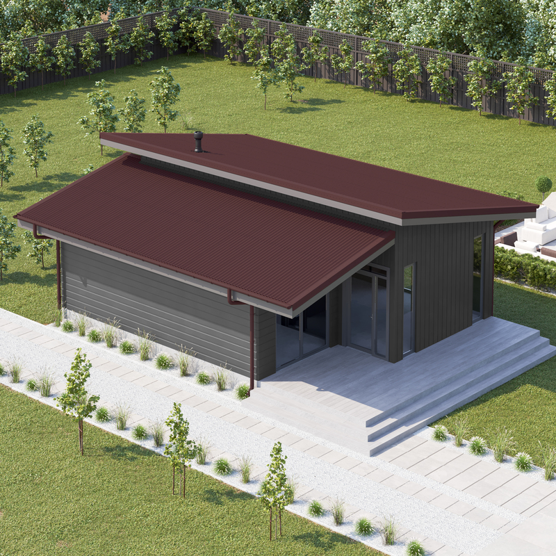 ONDULINE Smart красный дом односкатный рендер ракурс2 3000х3000