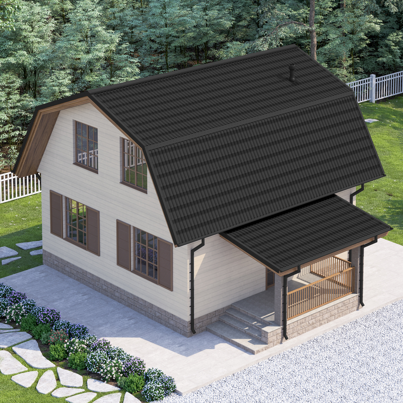 ONDULINE TILE графит дом мансарда рендер ракурс2 3000х3000