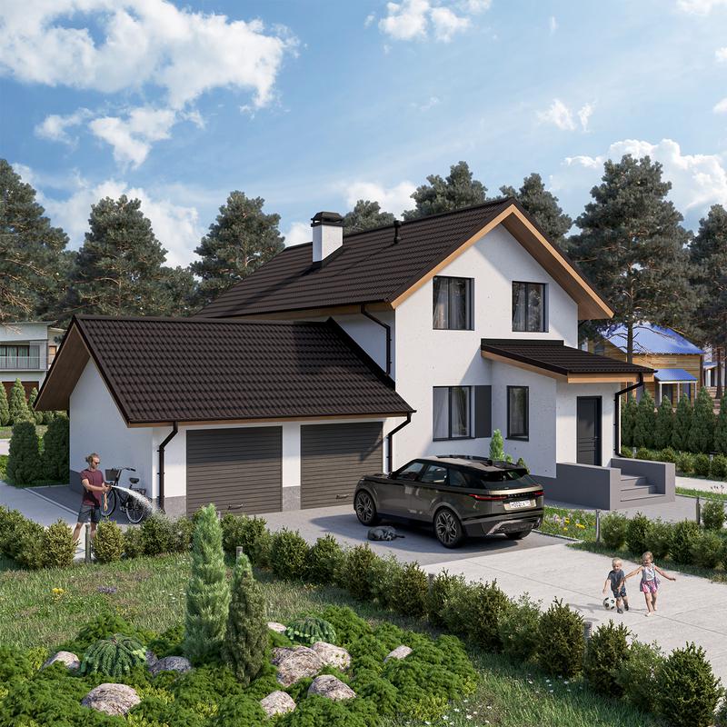 ONDULINE TILE коричневый дом двускатный рендер ракурс1 2024 легкий файл