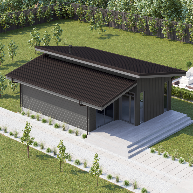 ONDULINE TILE коричневый дом односкатный рендер ракурс2 3000х3000
