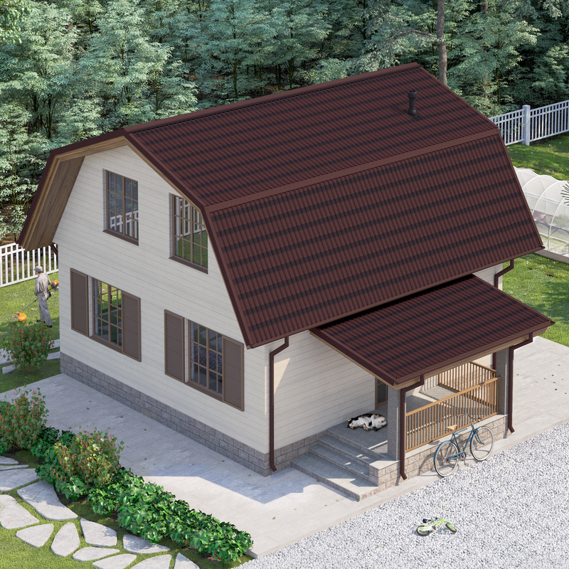 ONDULINE TILE красный дом мансарда рендер ракурс2 2024 3000х3000