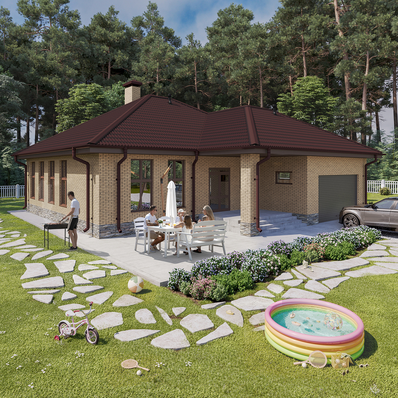 ONDULINE TILE красный дом многоскатный рендер ракурс1 2024 легкий файл