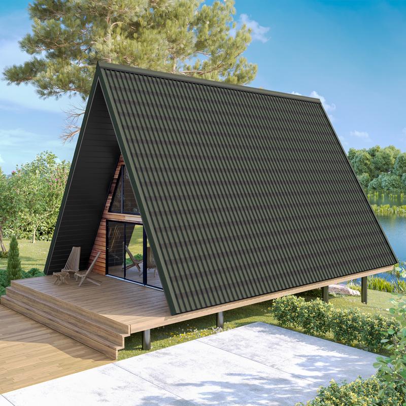 ONDULINE TILE зеленый А-фрейм дом рендер ракурс1 3000х3000