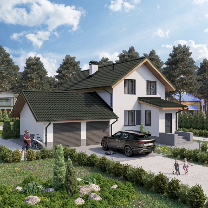 ONDULINE TILE зеленый дом двускатный рендер ракурс1 2024 3000х3000