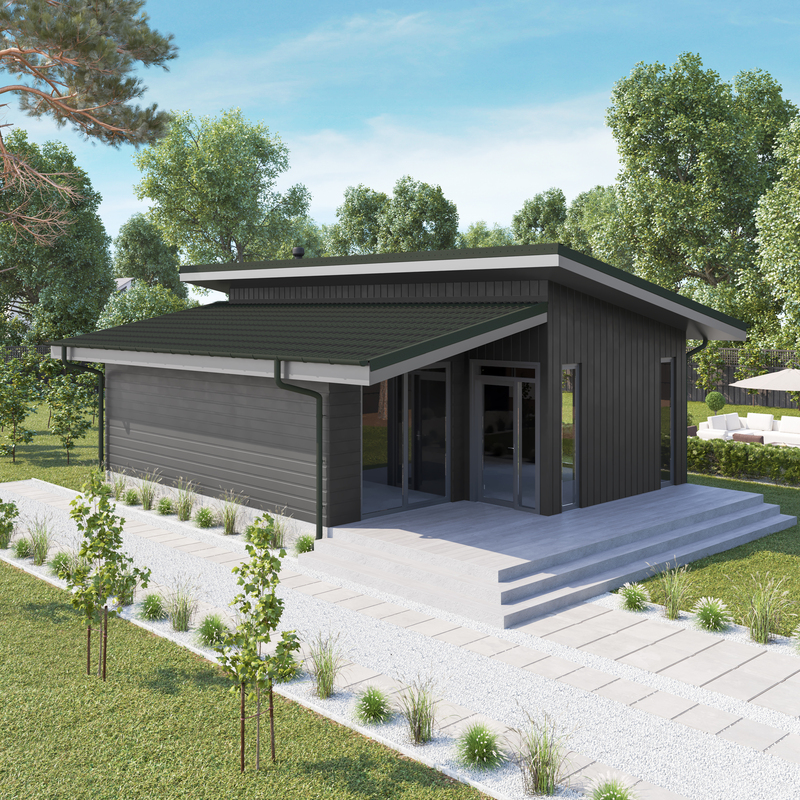 ONDULINE TILE зеленый дом односкатный рендер ракурс1 3000х3000