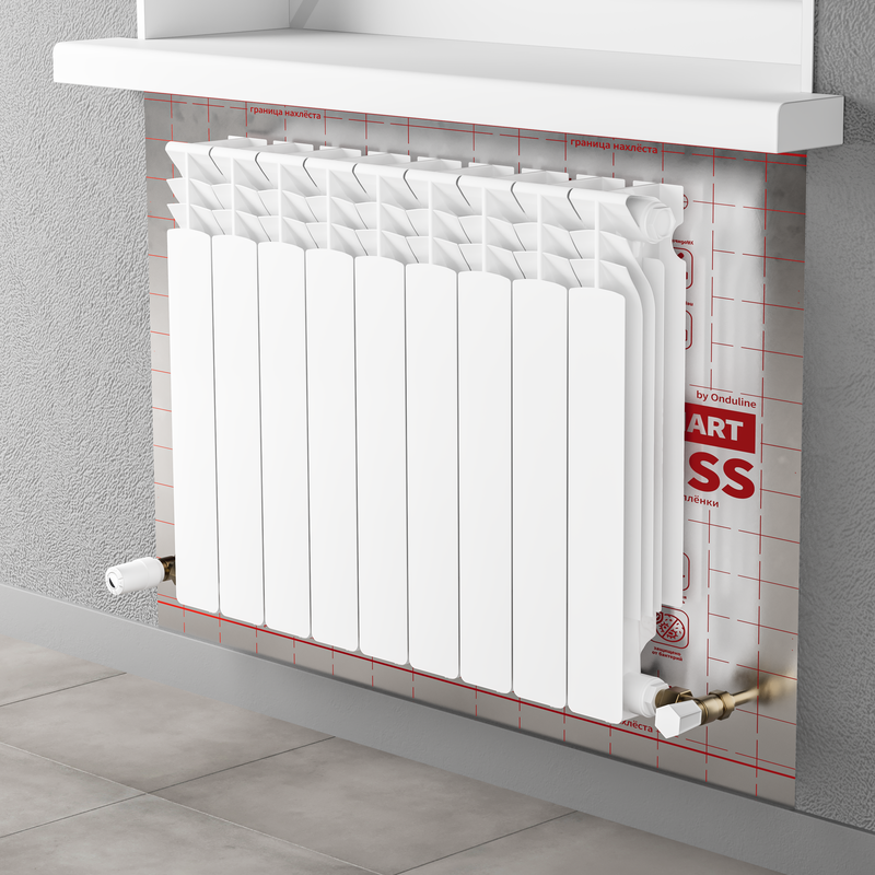 ONDUTISS Smart Termo 3D рендер конструкция за радиатором отопления прозрачный фон
