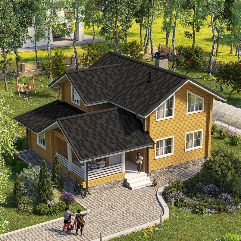 ONDUVILLА туманная ночь дом многоскатный рендер ракурс2 2024 легкий файл